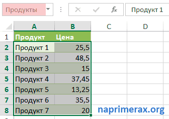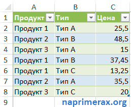 Заполняем оставшиеся ячейки и в результате получаем цены на каждый товар по типу: