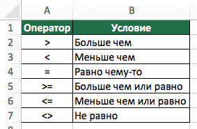 При использовании функции ЕСЛИ в Excel можно применять различные операторы для проверки условия. Ниже приведен список операторов, которые вы можете использовать: