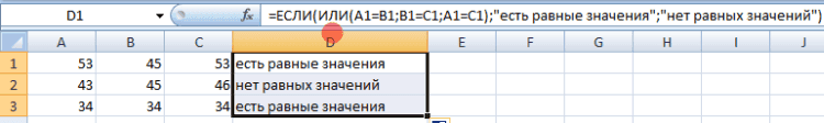 Пример использования функции ИЛИ: