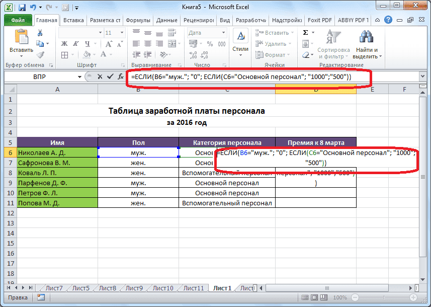 Давайте напишем формулу для этих условий в нужной нам ячейке.