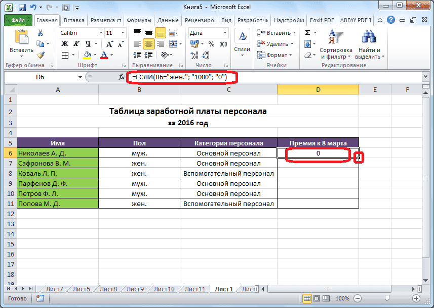 - Таким образом, мы получили таблицу со столбцом, заполненным функцией «ЕСЛИ».