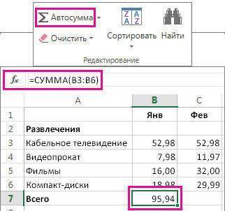 Автосумма выбранных ячеек