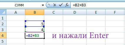 - В случае, когда используются простые операции, то для перехода в режим ввода формулы нужно поставить знак «=».