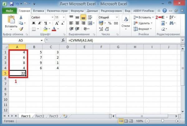 Если вам нужно посчитать сумму столбца или строки в Excel, вам нужно навести курсор на первую ячейку, нажать левую кнопку мыши и, не отпуская кнопку, переместить курсор на последнюю ячейку. Затем отпустите кнопку мыши и нажмите кнопку Автосумма на панели инструментов Excel.