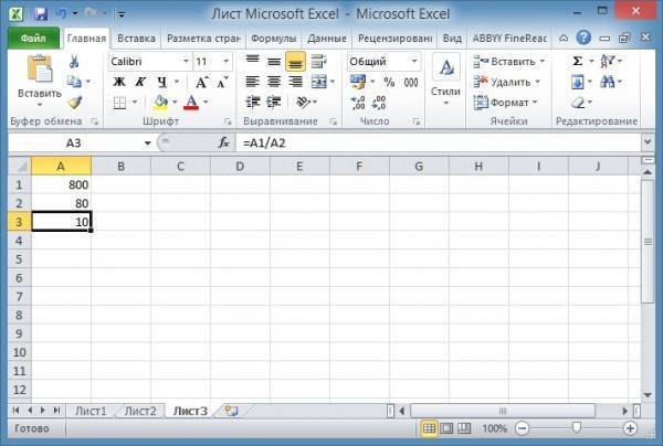 Формула деления в Excel выглядит следующим образом. Например, вам нужно разделить ячейку A1 на ячейку A2 в Excel и отобразить результат в ячейке A3.