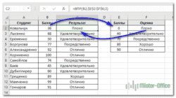 В ячейку B2 введем желаемую фамилию, а в ячейках C2:F2 запишем формулы: