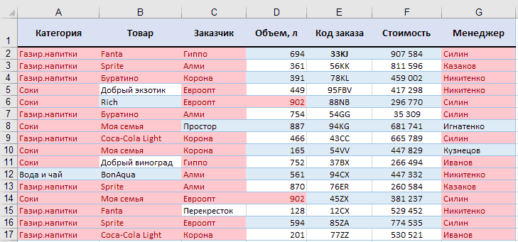 Как видите, повторений было много. Когда вы применяете встроенное правило дублирования к двум и более столбцам, Excel не сравнивает значения в них, а просто выделяет дубликаты. Для работы со всей таблицей или для сравнения столбцов этот способ вряд ли вам подойдет. Но для поиска в столбце или строке это довольно хорошо.
