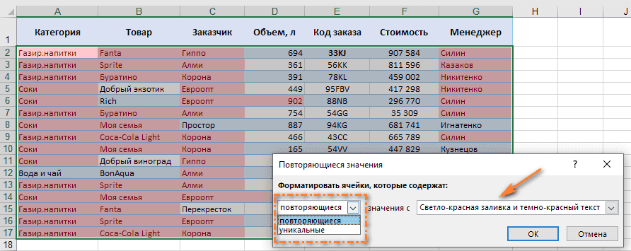 Как выделить повторяющиеся значения в Excel?